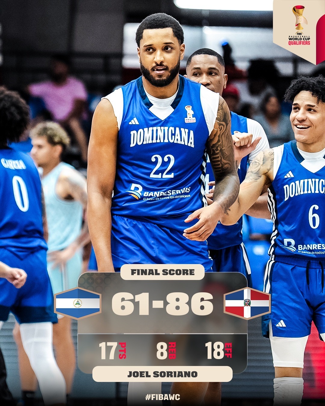 SANTO DOMINGO, RD.- La escuadra nacional de baloncesto masculino de mayores pulverizó este domingo al combinado de Nicaragua, 86-61, para conseguir su segundo triunfo seguido en la Segunda Ventana Clasificatoria a la Copa Mundial de Catar 2027.